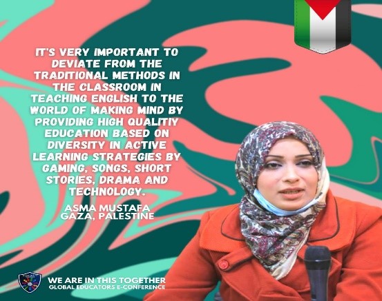 26. شاركت متحدثة في عدة مؤتمرات We are in This Together الذي أطلقته إدارة مشروع السلام العالمي التابع لجامعة شوكويو في اليابان خلال جائحة كورونا في مواضيع مختلفة فيما يتعلق بالفصول الافتراضية وتجارب ملهمة وغيرها. 2020/2021