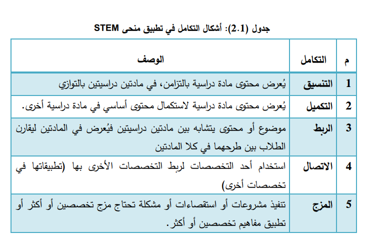 أهداف ومتطلبات و أشكال التكامل في منحى ستيم STEAM