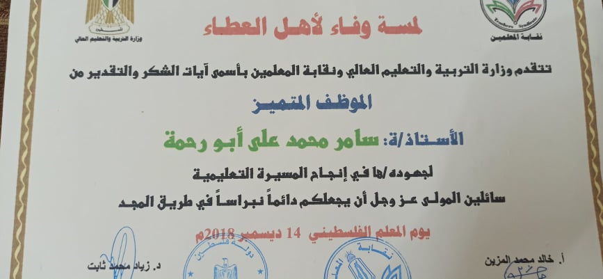 جائزة تهدف إلى دعم جهود المعلمين وتقدير جهودهم تمنح كل عام في يوم المعلم الفلسطيني تهدف الى الارتقاء بالمستوى التعليمي وكفايات المعلم
