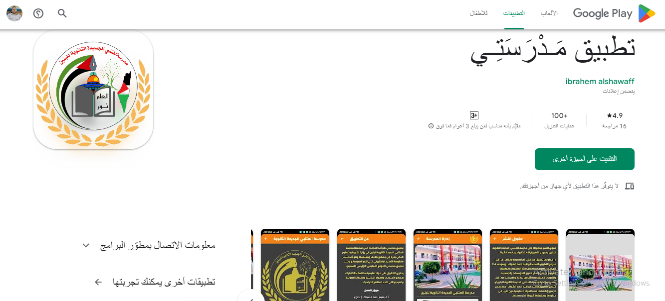 مبادرة " تطبيق مدرستي " هو تطبيق من برمجة وتصميم الأستاذ إبراهيم أحمد الشواف وهو أحد الخدمات التي تقدمها مدرسة المتنبي الجديدة الثانوية للبنين التابعة لوزارة التربية والتعليم إلى جمهور طلابها ومعلميها، حيث يعتبر من عناصر منظومة التعليم الإلكتروني التي تتبع المدرسة. يحتوي " تطبيق مدرستي " على مواد تعليمية مختلفة من نماذج اختبارات ومواد تدريبية وملفات صوتية وفيديو تخدم المنهاج الفلسطيني، تم إعدادها من الكادر التعليمي بالمدرسة بالإضافة إلى بعض المواقع الإلكترونية للتسهيل على الطالب وصول المعلومات. كما يحتوي على صفحة تواصل بين المعلم وطلابه من خلال مواقع التواصل الاجتماعي للمعلم، على أن يستفيد منها طلاب الفرع الأدبي بالمدرسة والمديرية. كما يحتوي " تطبيق مدرستي " على صفحة لتواصل أولياء الأمور مع إدارة المدرسة ومرشدها للإشراف على أبنائهم بشكل مباشر، من أجل تقديم الاستشارات التربوية والنفسية.